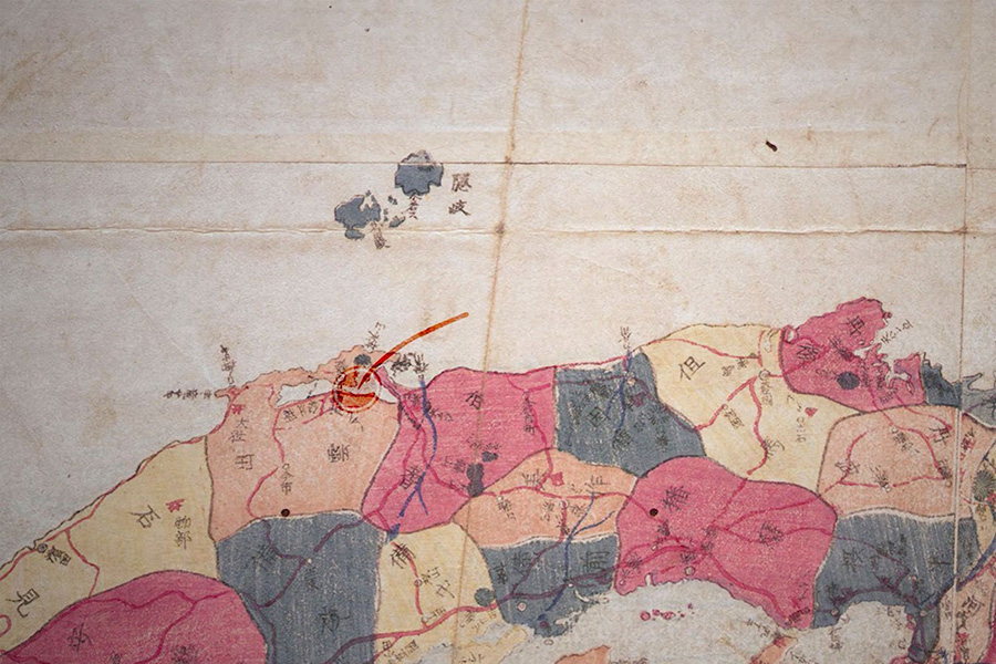 山間部に位置する菅谷たたらでつくられた鉄は、馬の背に積まれ川港へ向かいます。川舟に積み替えられた鉄は、三刀屋(みとや)川や斐伊川を下り、宇龍(うりゅう)港(出雲市)や松江港(松江市)まで運ばれました。そして、ここで廻船に積み替えられ、全国の刃物産地などへと出荷されました。これらの船は北前船と呼ばれ、全国各地の寄港地では安全を祈願した絵馬が奉納されています。